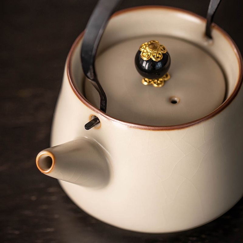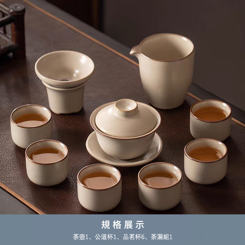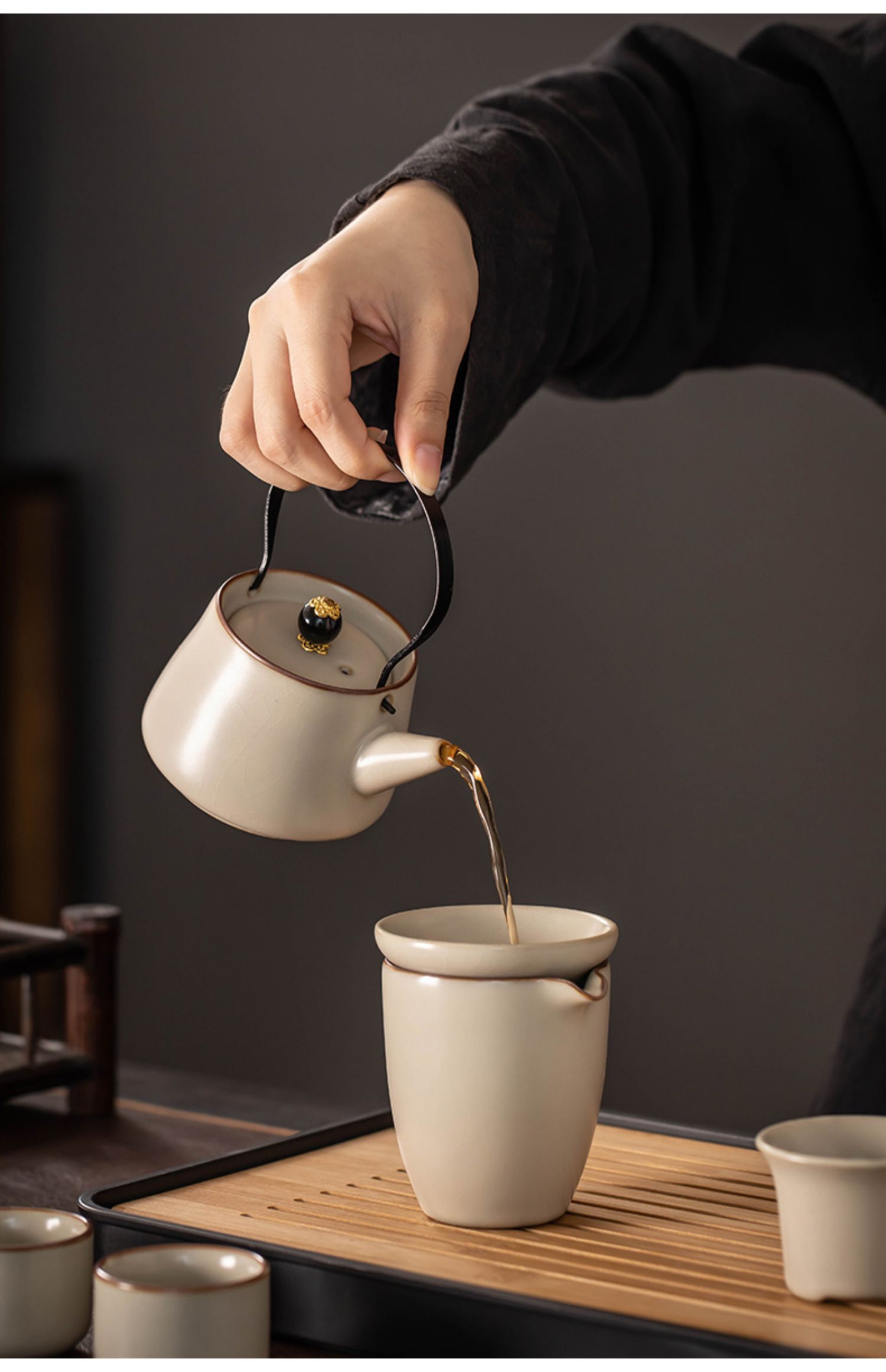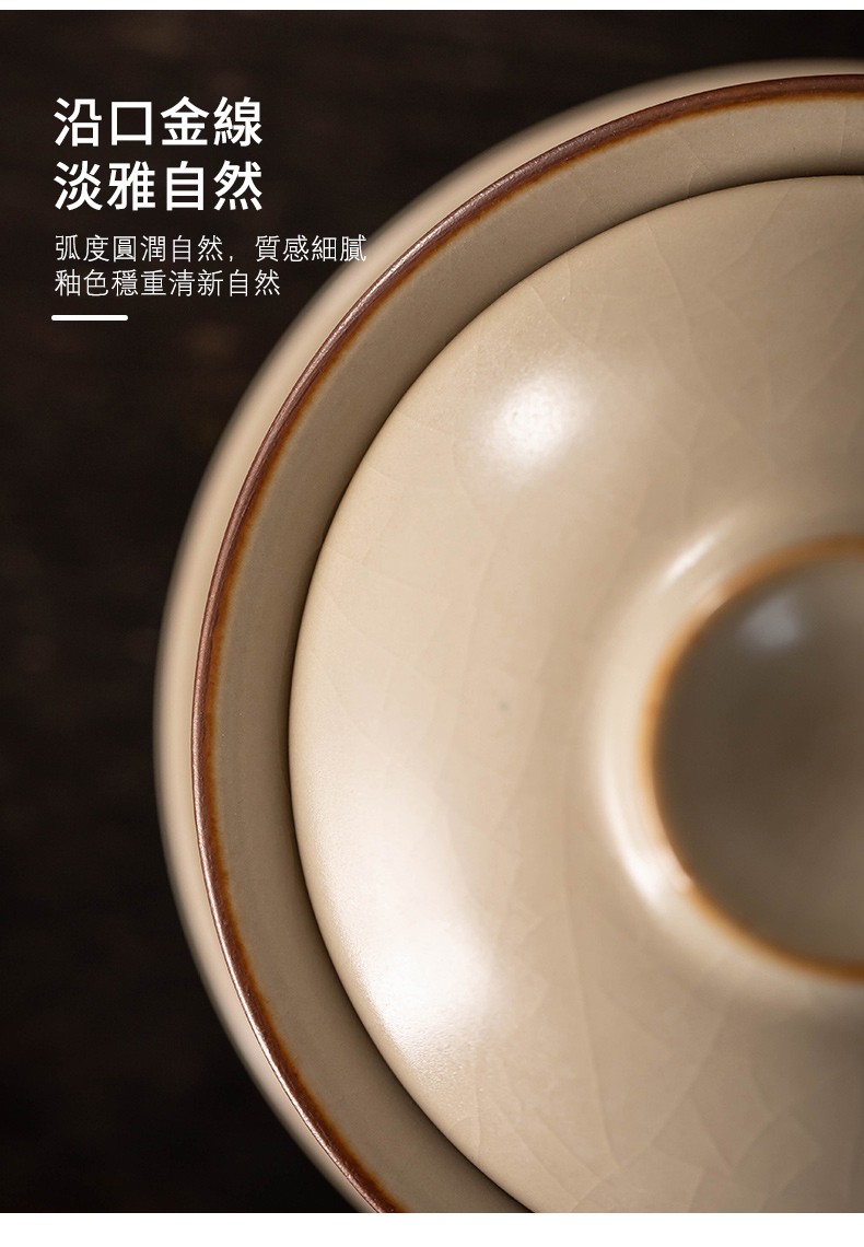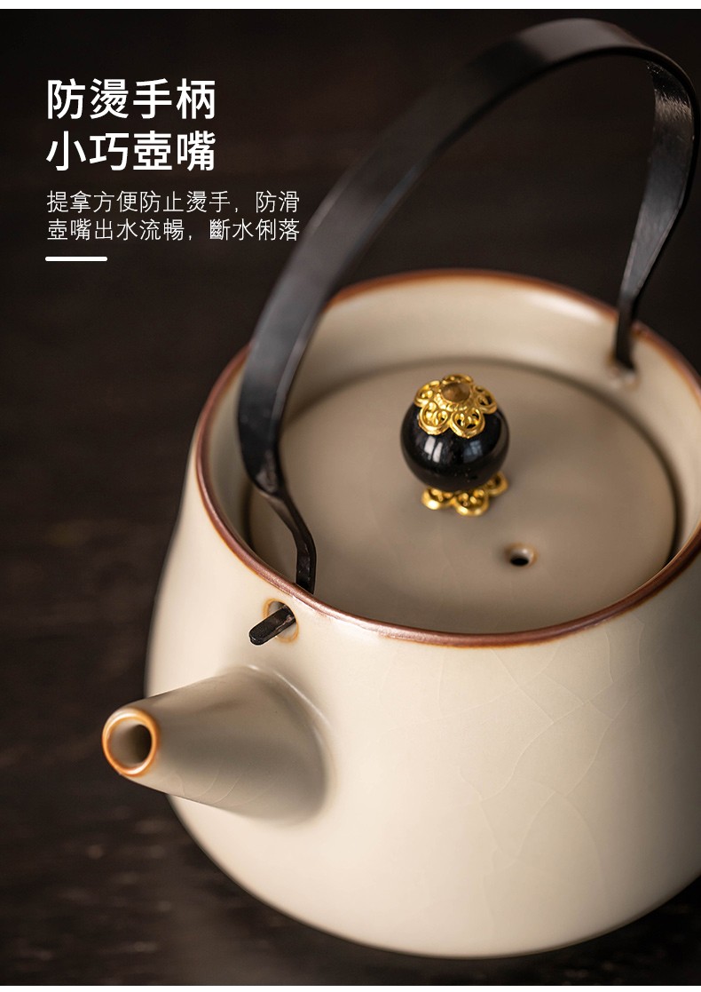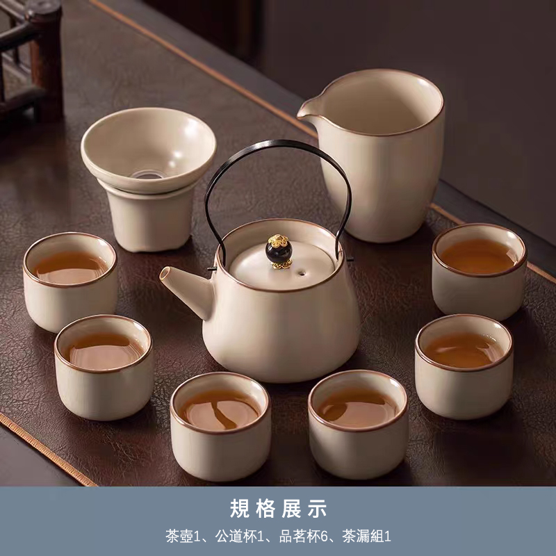 米黃汝窯【御煌提梁壺蓋碗】八杯13件套
