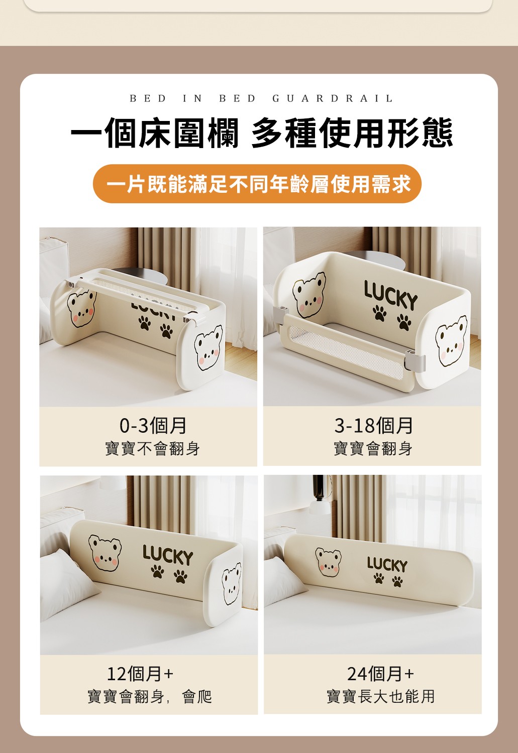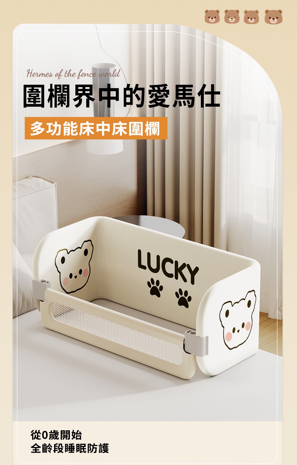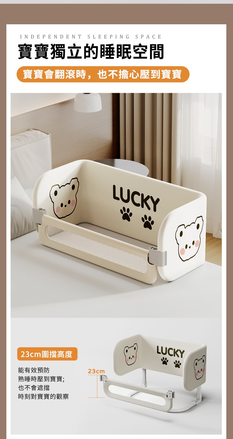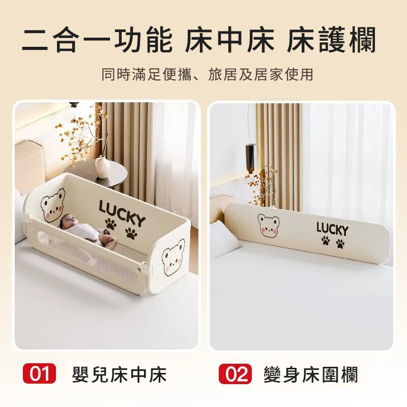 從0歲開始,全齡段睡眠防護【Lucky Baby】多功能床中床圍欄,360°全面包裹,透氣不悶