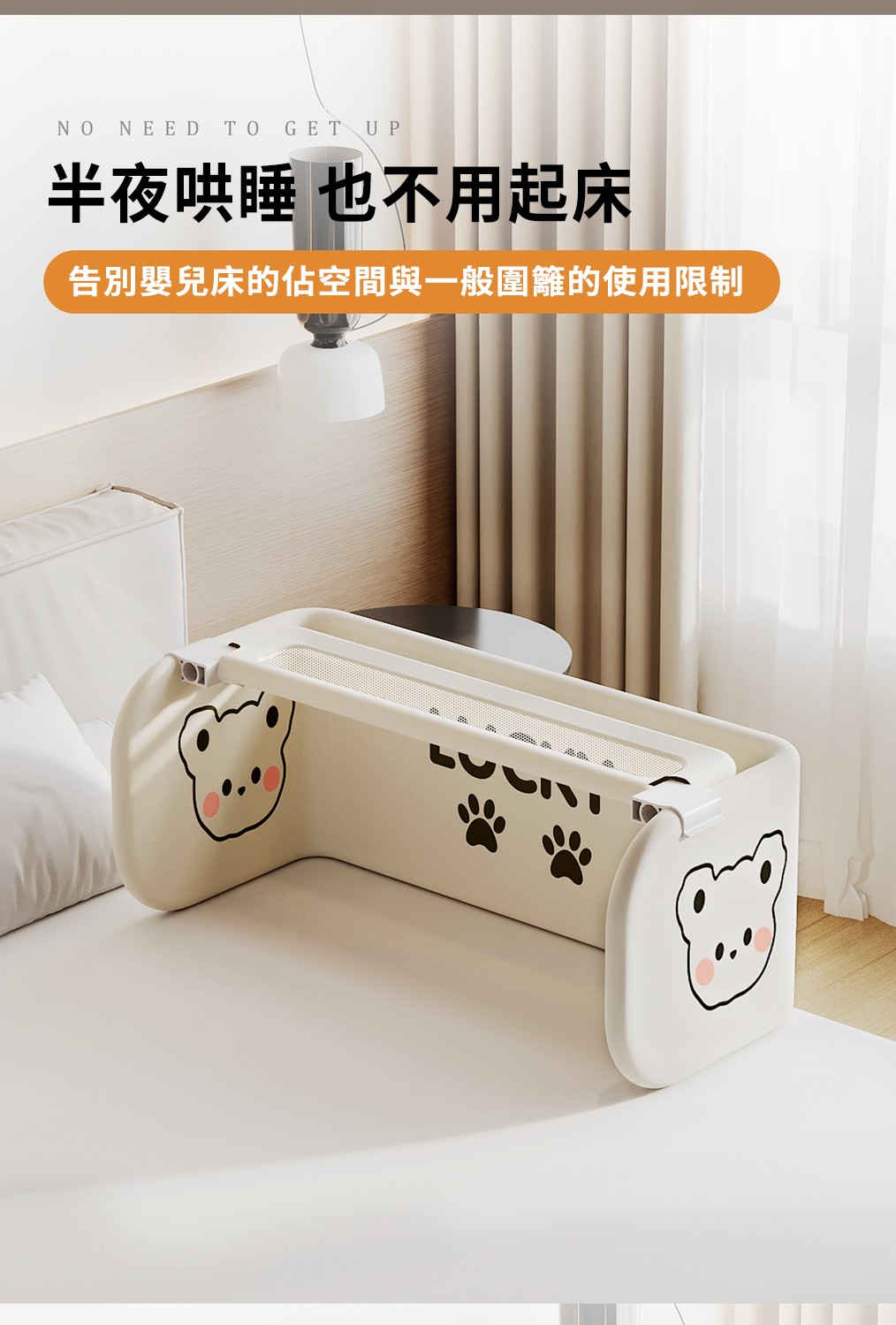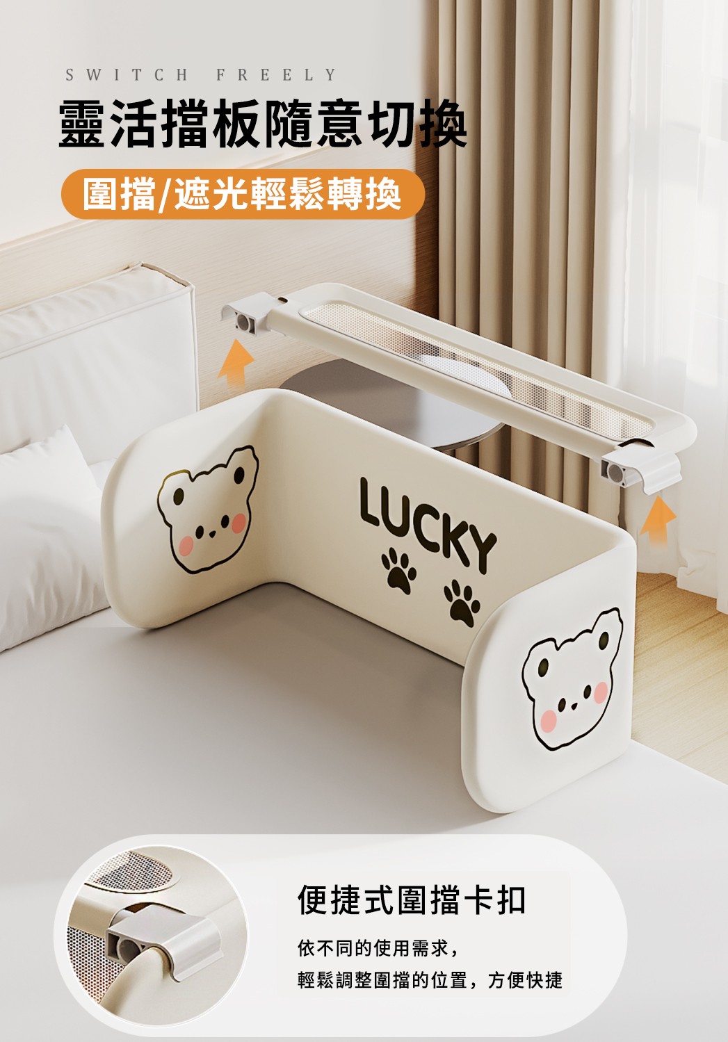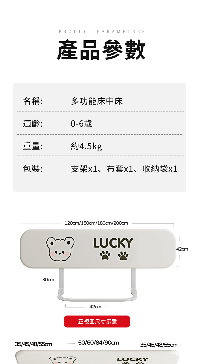 從0歲開始,全齡段睡眠防護【Lucky Baby】多功能床中床圍欄,360°全面包裹,透氣不悶