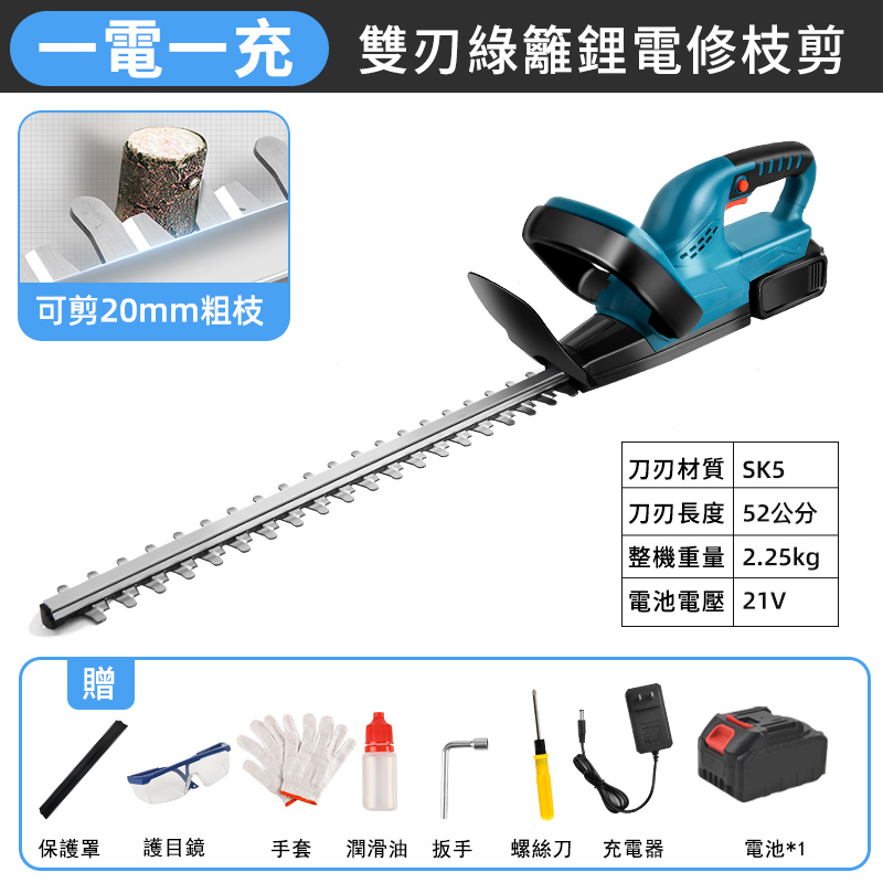 【全新升級加長刀身】無刷雙刃21v一電一充