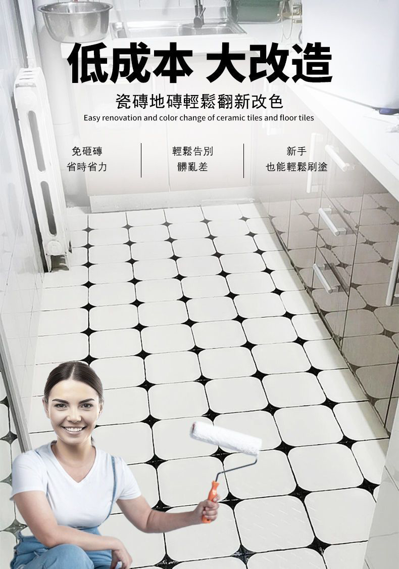瓷磚防滑剋星】瓷磚漆防滑改色二合一,煥然一新,不帶甲醛,無毒無害,家中有老人小孩孕婦都能使用