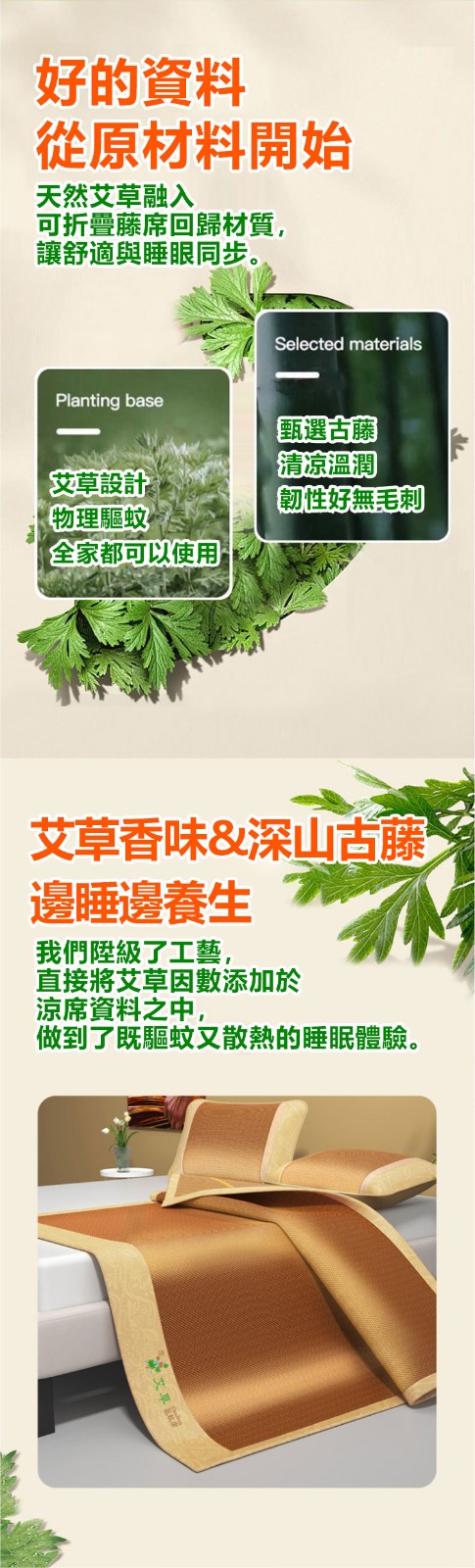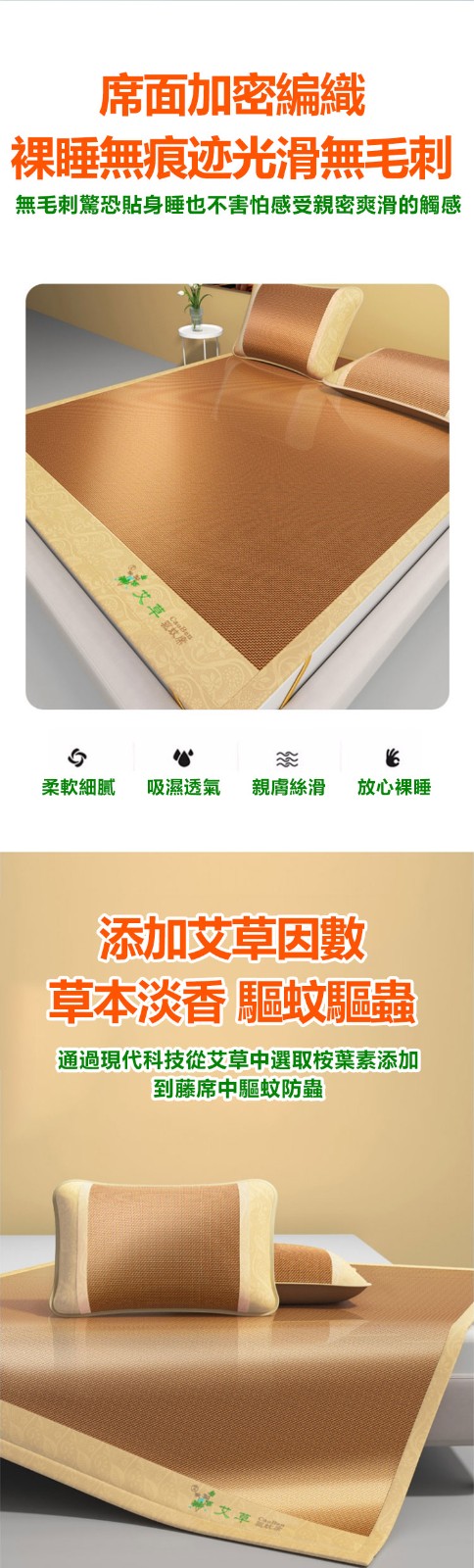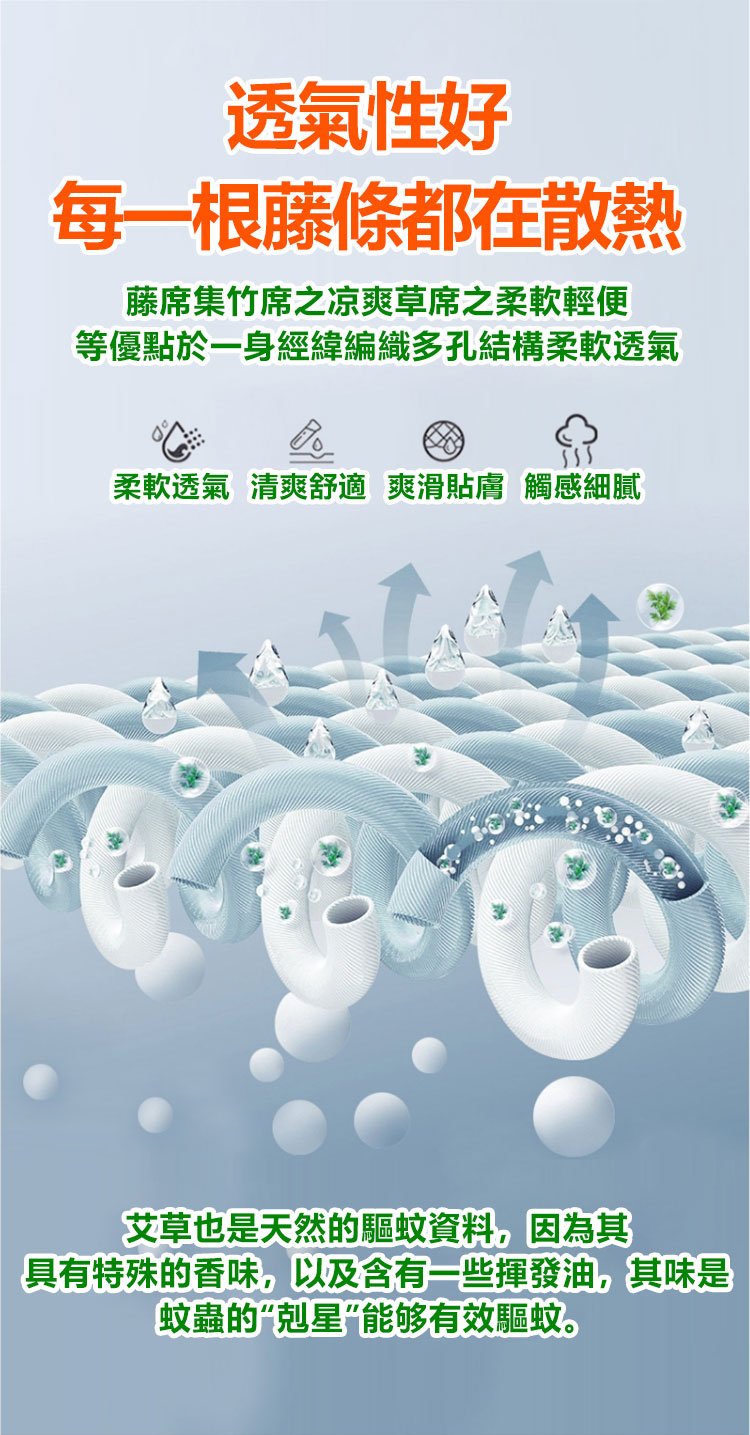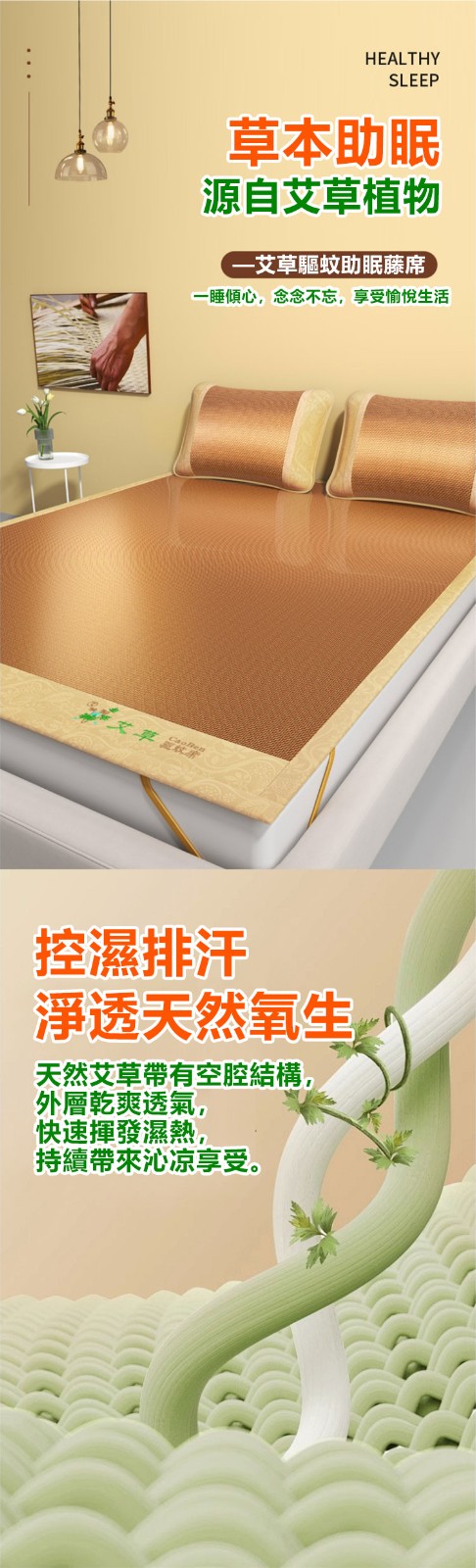 天然草本】植物編織 艾草涼席 防蚊驅蚊,可機洗,涼而不冰無毛刺,嬰兒,孕婦,老人全家適用