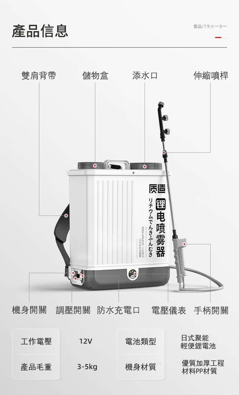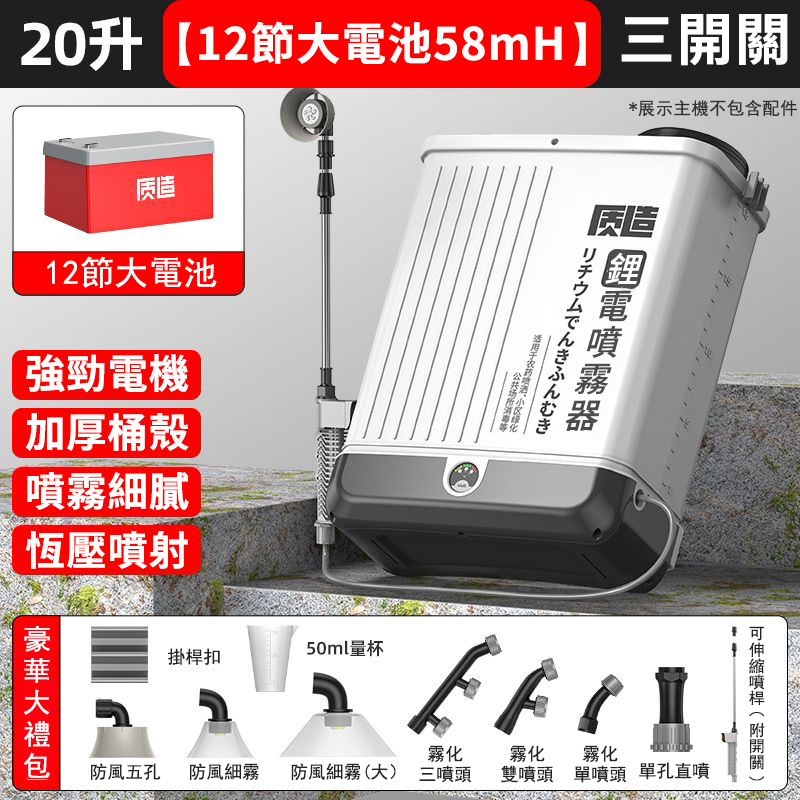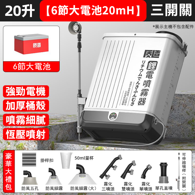20L三開關58mH鋰電池(可連續使用7.5小時)