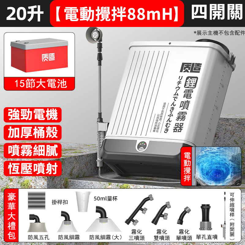 20L【電動攪拌】四開關88mH鋰電池(可連續使用9小時)