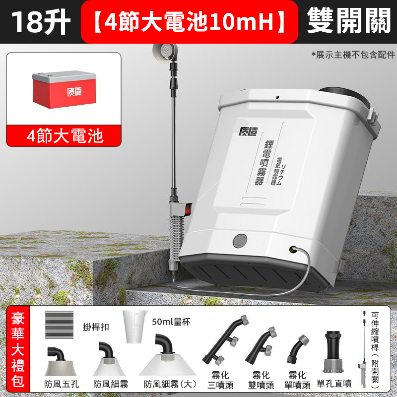 18L雙開關10mH鋰電池(可連續使用1.5小時)
