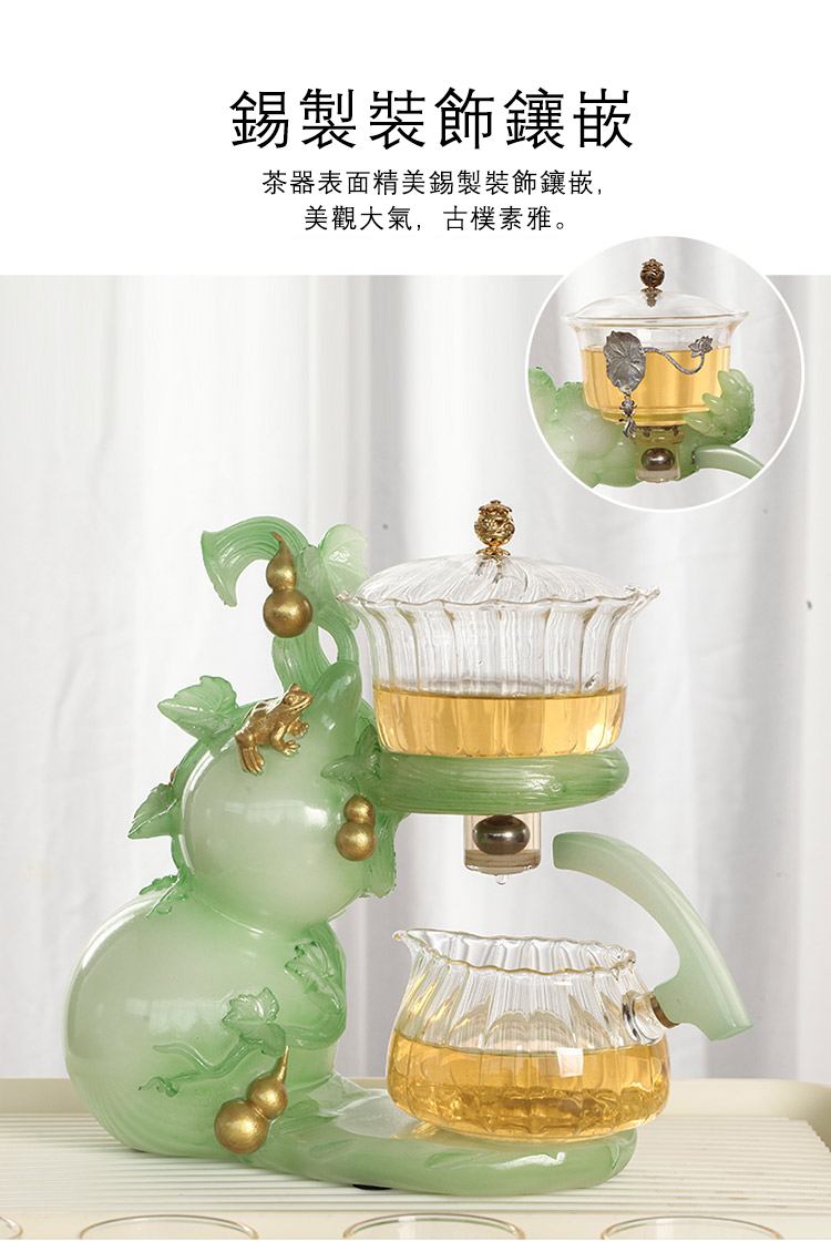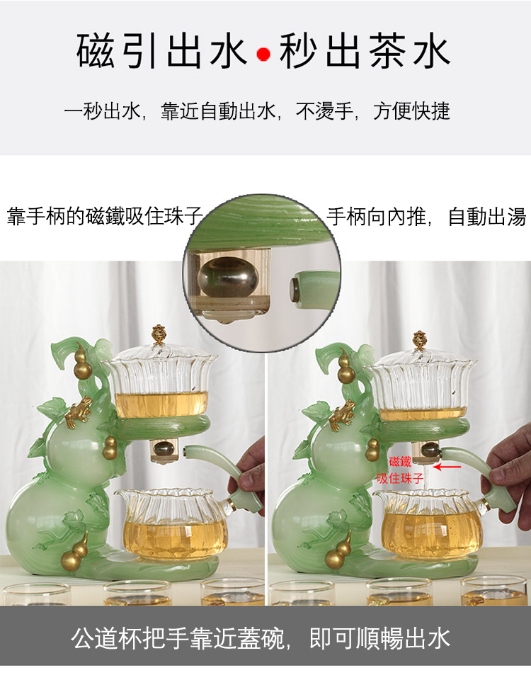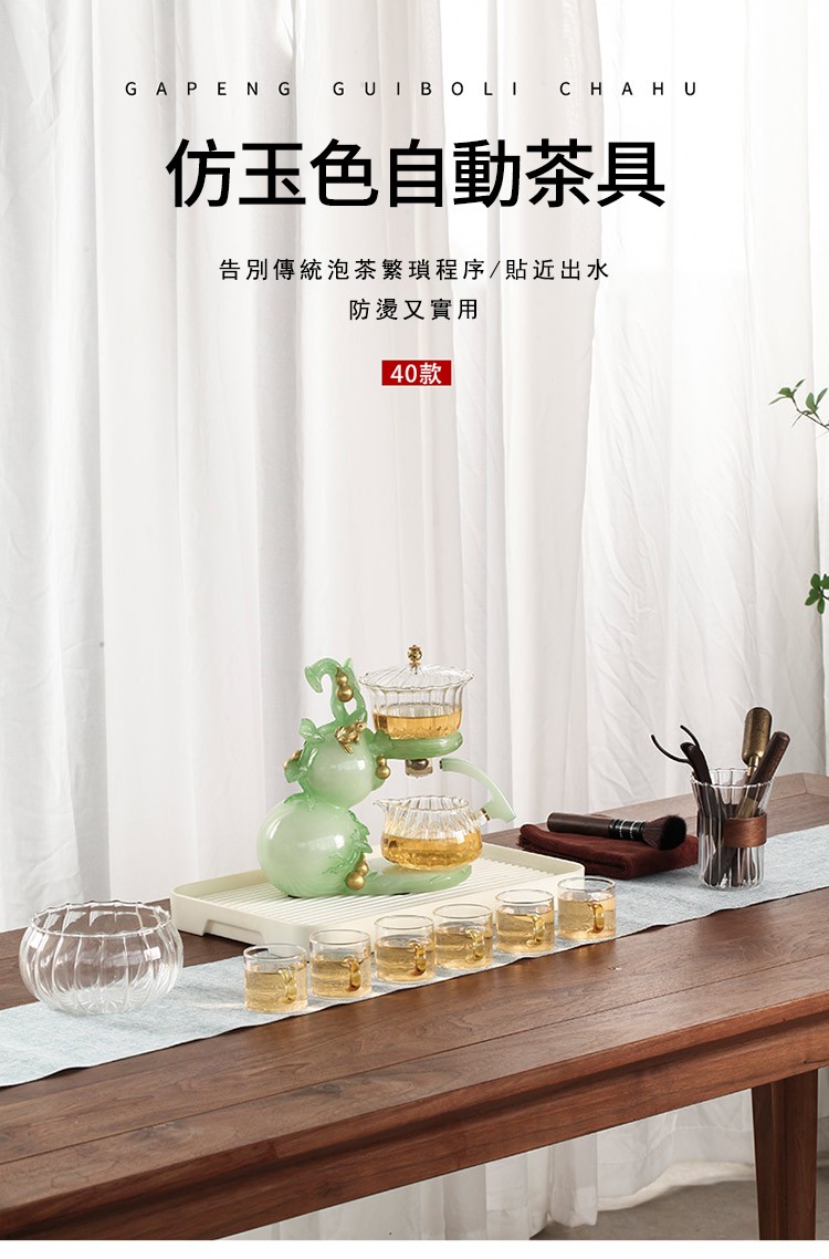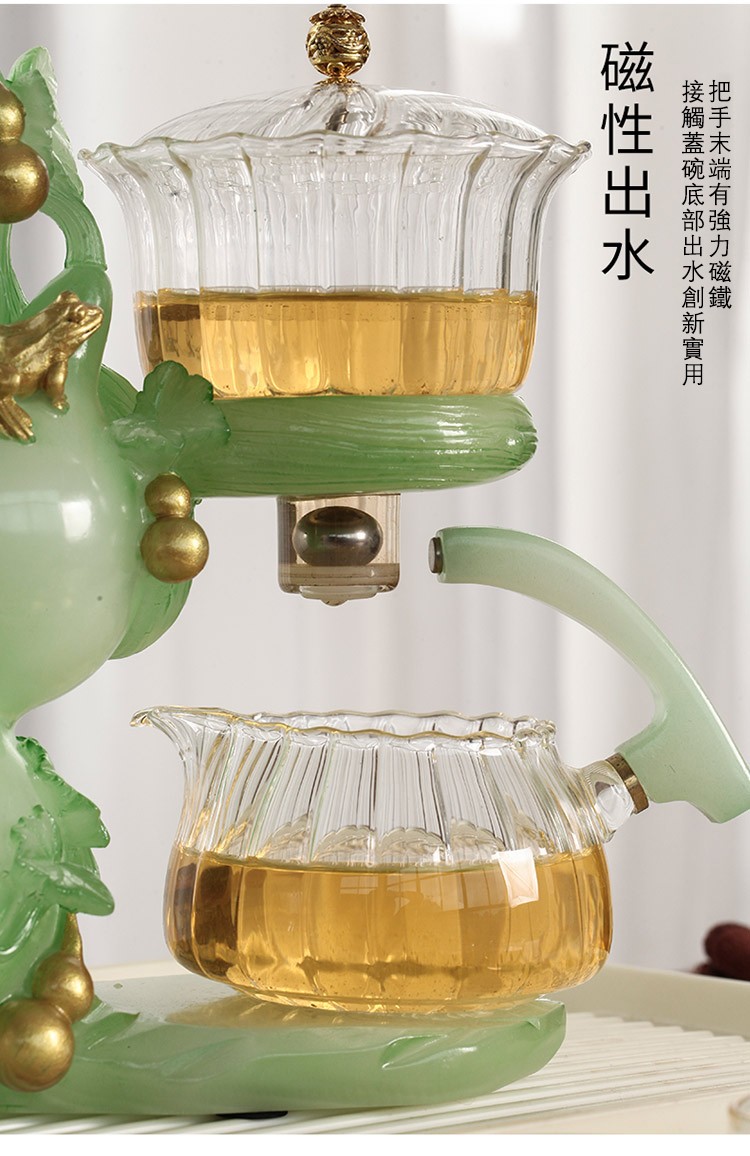 【茶具就找容山堂】全新上市【福壽滿堂】仿玉色磁吸自動茶具 !