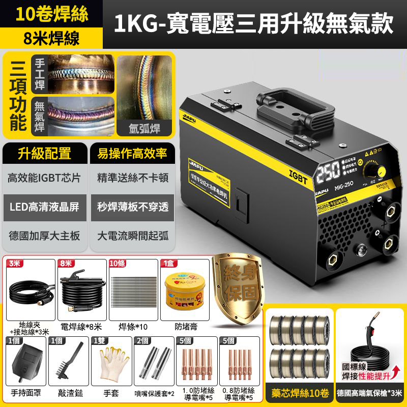 1KG-250三用升級無氣【10卷焊絲】+3米氣保槍+8米焊線+3米地線NT$5080