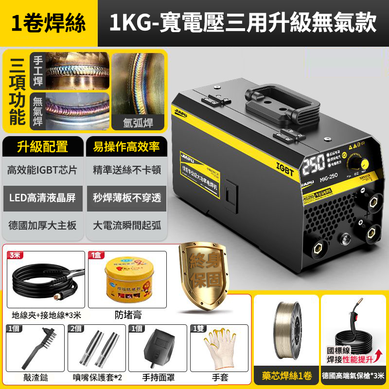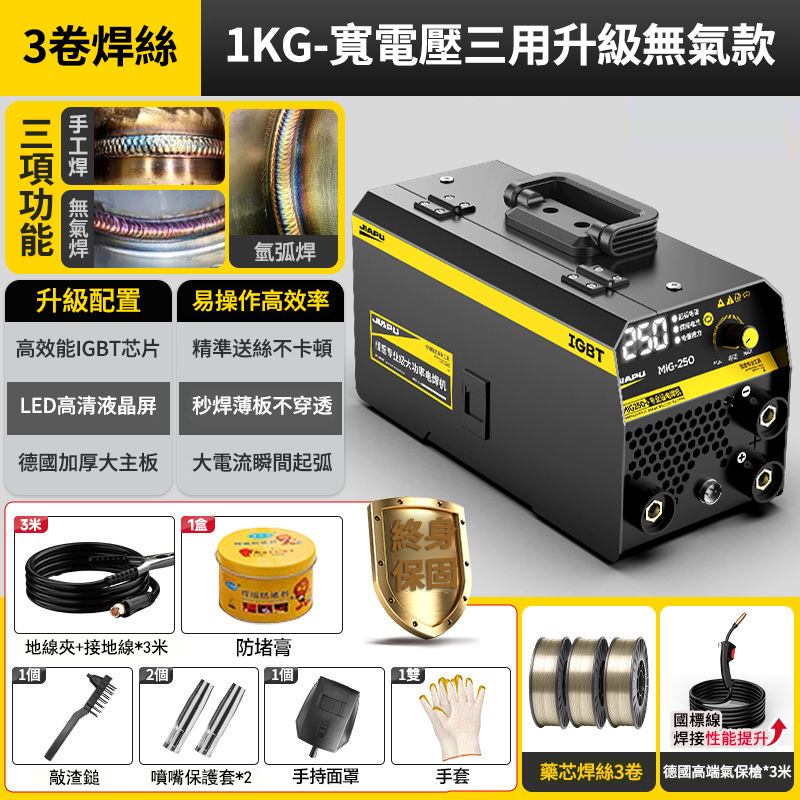 1KG-250三用升級無氣【3卷焊絲】+3米氣保槍+3米地線NT$3680