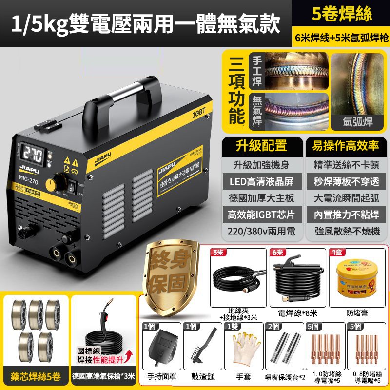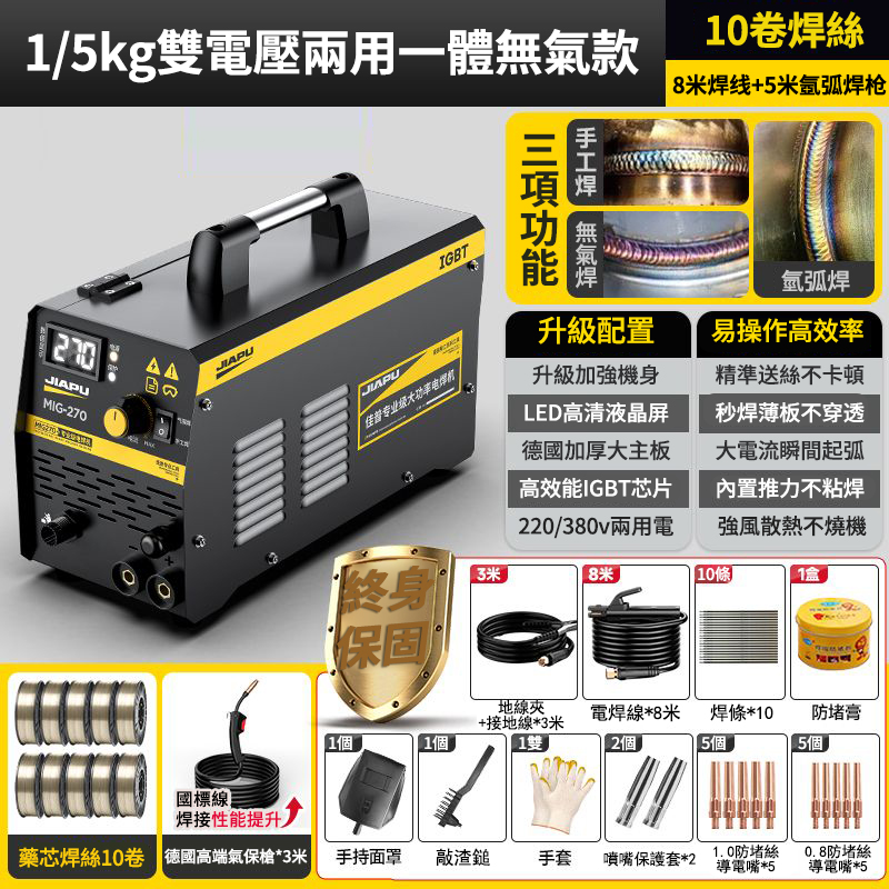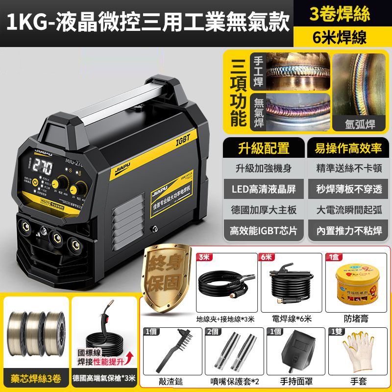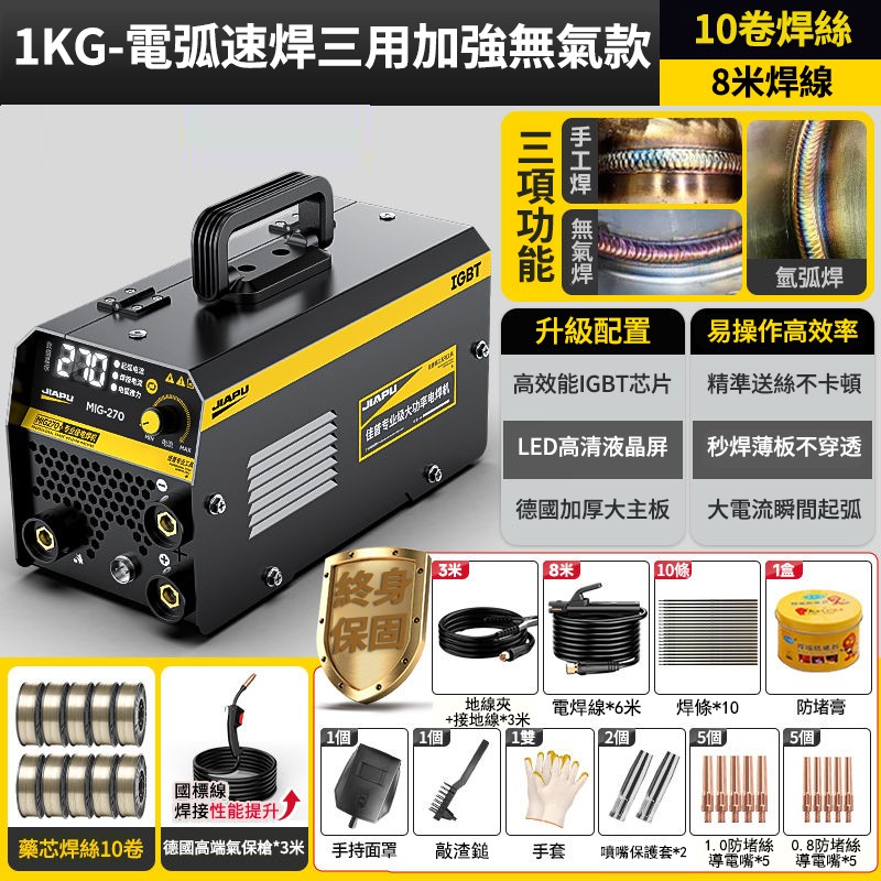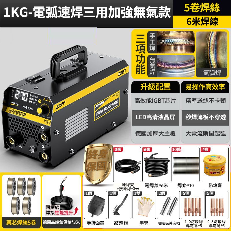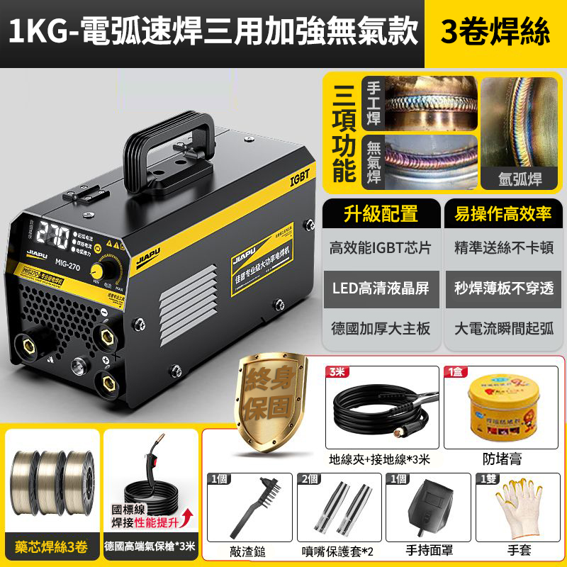 1KG-270三用升級無氣【10卷焊絲】+3米氣保槍+8米焊線+3米地線NT$5580