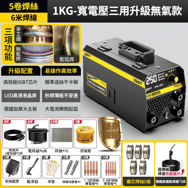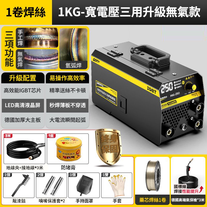 1KG-250三用升級無氣【1卷焊絲】+3米氣保槍+3米地線NT$3480