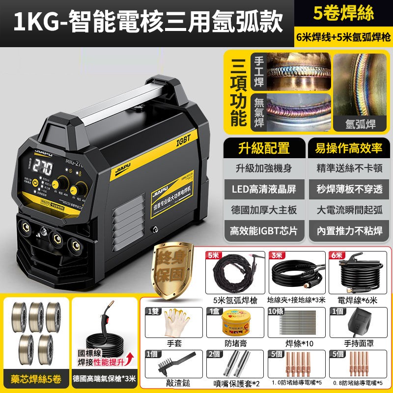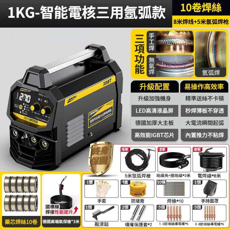 1KG-270三用專業氬弧【10卷焊絲】+3米氣保槍+4米氬弧焊槍+8米焊線+3米地線NT$6280