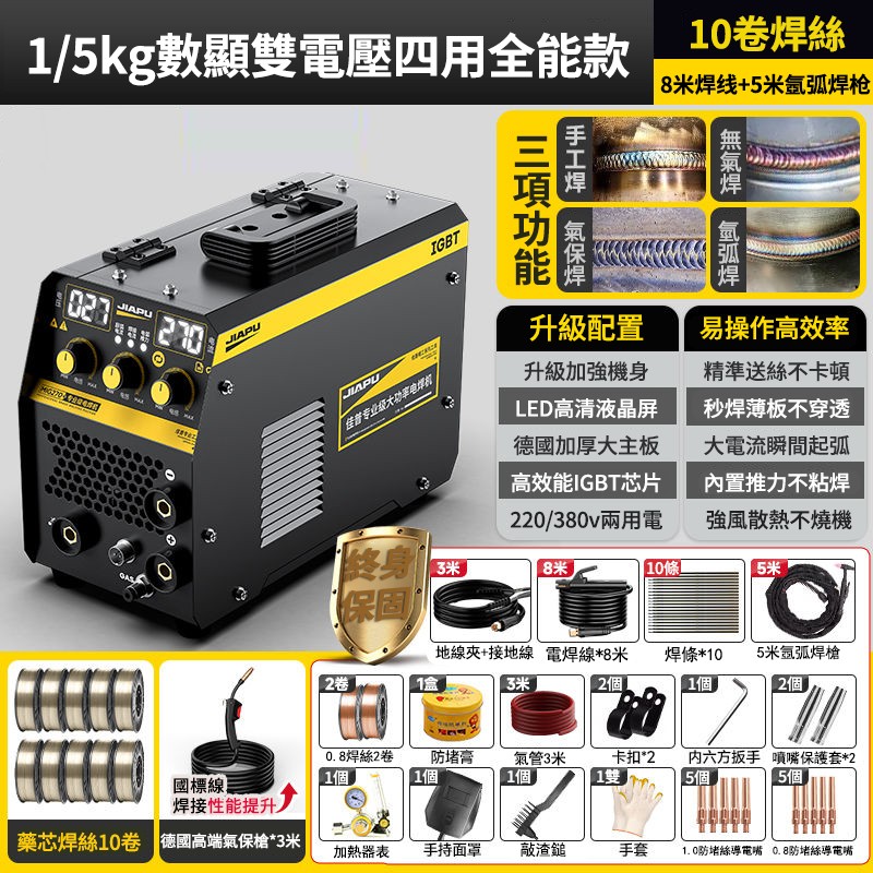 5KG數顯雙電壓四用全能【10卷焊絲】+3米氣保槍+8米焊線+3米地線+4米氬弧焊槍NT$10000
